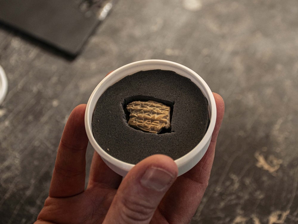 לדברי ד"ר ענת כהן-וינברגר מרשות העתיקות, "בדיקת הרכב שבר הכתובת הראתה בבירור כי החומר שממנו יוצר שונה לחלוטין מחומרי הגלם המקומיים, ששימשו לייצור כלי חרס, בולות ותעודות טין בירושלים ובדרום הלבנט. לצד זאת, הרכב המינרלים של הבולה תואם באופן כללי את הגיאולוגיה של אזור אגן החידקל, שבו שכנו הערים המרכזיות של הממלכה האשורית כדוגמת נינווה, אשור או נימרוד. בימים אלה מתבצע ניתוח כימי של הרכב הבולה בשיתוף ד"ר יהודית הרלבן מהמכון הגיאולוגי, במטרה לקבוע במדויק את מקור הייצור."