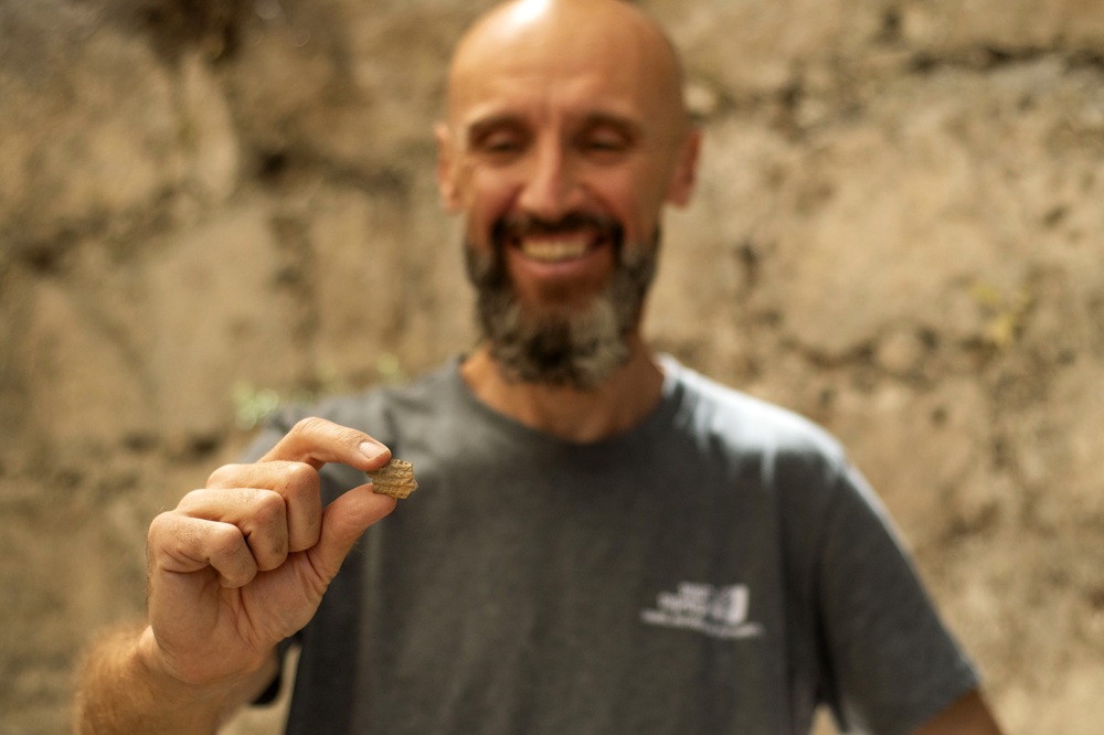 השבר הקטנטן, שגודלו כ- 2.5 ס"מ, התגלה במסגרת סינון רטוב שנערך ב"חוויה הארכיאולוגית" שבגן לאומי עמק צורים – פרויקט משותף לרשות הטבע והגנים ולעמותת עיר דוד.