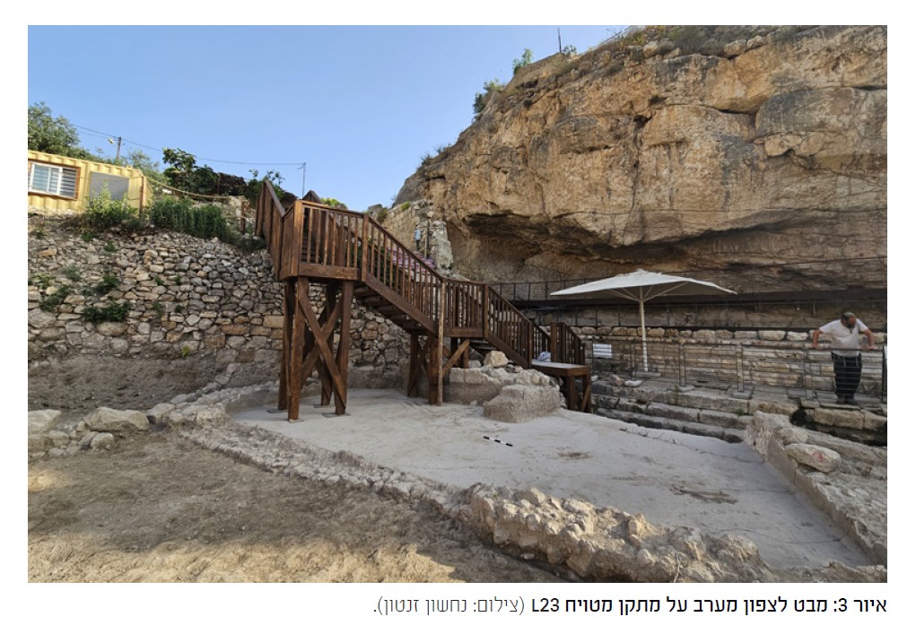 ³ החפירה במקום הופסקה בשל עומק החפירה הרב ובשל מים שהתנקזו למקום, ולכן היחס הסטרטיגרפי בין שני הקירות טרם הוברר.