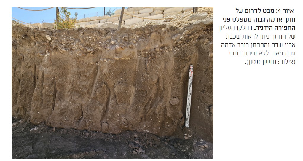 בשלב זה ניכר כי מדובר בשוד של ראש קיר משלב קדום יותר, שנעשה כאן בציר צפון–דרום (שכבה 4 להלן). בתוואי השוד הורבדו שתי שכבות אדמה שונות: העליונה מביניהן הכילה קרמיקה מהתקופה העות'מאנית, והתחתונה מהתקופה הממלוכית. יש לציין כי חלקן הצפוני של שכבות אלו כבר נחפר ותועד בעבר על ידי רייך ושוקרון, בשטח שבין הפן הפנימי והאלכסוני של גרם המדרגות ובין פניו של קיר הסכר (שוקרון ורייך 2005: 34). רייך ושוקרון סברו כי ייתכן שמדובר בהפרעה מאוחרת שנגרמה לאתר על ידי חוקרים כגון גוטה או בליס ודיקי, והציעו לערוך חפירת בדיקה בתוך "הגן הסמוך," כלומר בתוך ברכת אל-חמרה, בשטח שלא הופרע (שם).