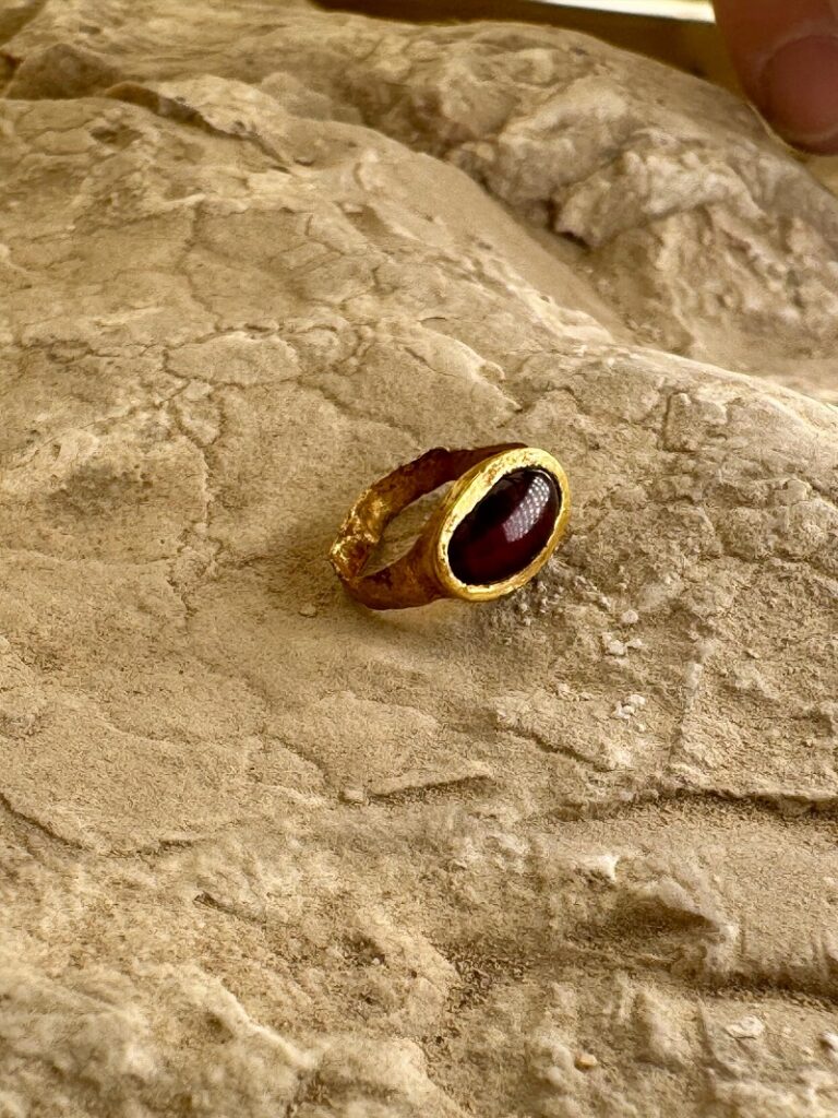 טבעת זהב משובצת אבן חן אדומה, בת כ-2,300 שנה, התגלתה בחפירות שמנהלות רשות העתיקות ואוניברסיטת תל אביב בעיר דוד שבגן לאומי סובב חומות ירושלים, במימון עמותת אלע"ד. זוהי טבעת הזהב השנייה שנחשפת בתוך פחות משנה מאותה החפירה ומאותה תקופה.